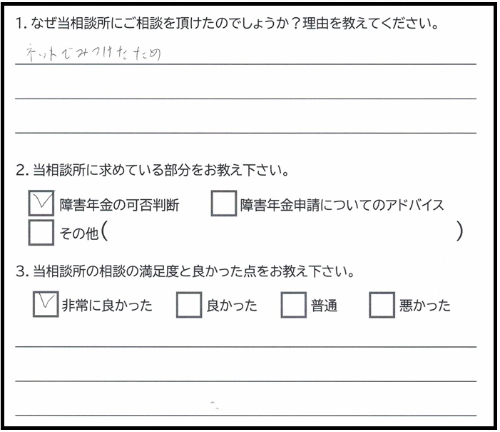 お客様から感謝の声をいただきました(倉敷市 重症うつ病エピソード・自閉スペクトラム症 障害基礎年金2級)